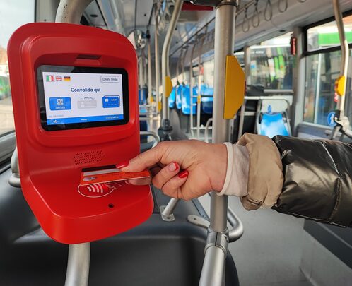 Una volta saliti a bordo, i biglietti possono essere annullati avvicinando il QR code (rivolto verso l’alto) alla parte inferiore del validatore (un segnale visivo indica il punto di lettura).