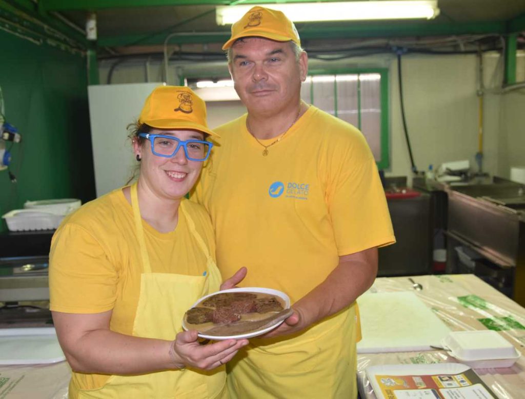 Non poteva mancare alla “Fiera della Polenta”, in programma a Vigasio fino a domenica 5 novembre, uno dei piatti tipici della tradizione culinaria veronese, il bollito con la pearà. A prepararlo, nella cucina numero 4, la ditta “Colombini prodotti genuini dal 1978” di Bionde di Salizzole. “ E’ la nostra pietanza che sta riscontrando la preferenza da parte del pubblico ma era prevedibile fosse così, considerato anche il periodo autunnale”, spiega Marta, uno dei quattro soci dell’azienda. “ Gettonatissimo, è il classico piatto delle festività che in occasione di questa Fiera è possibile degustare non solo tutte le sere ma anche a pranzo sabato e domenica”. Per quanto riguarda la sua composizione , Marta Colombini spiega che “ inseriamo la Copertina, detta “capel del prete”, taglio di manzo prediletto per il bollito; poi la lingua fresca di manzo e infine il re del piatto, ovvero il cotechino di nostra produzione fatto con la ricetta di mio padre tramandata da mio nonno”. Per quanto riguarda la pearà, “è una salsa composta da pane tostato e grattugiato, midollo, un buon brodo di carne e, immancabile nella giusta quantità, il pepe. La pearà viene quindi adagiata nel piatto che a questo punto, con l’aggiunta di carne, lingua e cotechino, è pronto per essere servito. Il nostro segreto? L’amore che mettiamo ogni giorno nella preparazione delle pietanze materie di prima scelta”.