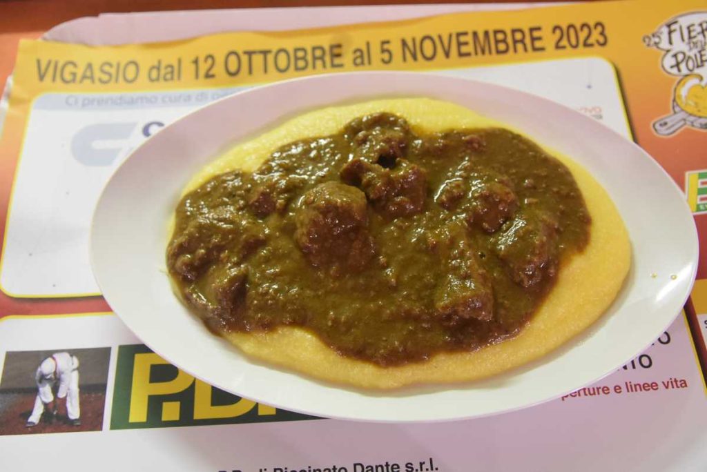 Prosegue a Vigasio la 25ma edizione della “Fiera della polenta” che sta facendo registrare un afflusso record e non solo nei fine settimana. Tra le pietanze maggiormente richieste polenta a baccalà, preparata nella cucina 13 da ben 23 anni dall’Associazione “ Le ave mate de Forete”. Il suo presidente Cristian Cordioli conferma che “pur essendo un piatto tipico della cucina vicentina ogni edizione è il più gettonato. Serviamo 180 grammi di baccalà su un letto giallo del nostro mais autoctono di Vigasio, sempre caldo bollente perchè questo è il vero segreto altrimenti perde tutto il suo aroma, senza aggiunte ad esempio di formaggio o acciughe perché ne snaturerebbe il sapore. Certo, abbiamo la nostra ricetta per prepararlo dal momento che utilizziamo qualche ingrediente per esaltarne il gusto ma non lo sveliamo, posso solo invitarvi ad assaggiarlo poiché l’aroma è davvero incredibile”. Altra pietanza richiestissima polenta e musso, preparata nella cucina 3 dal Comitato San Martino di Forette. “ E’ un piatto tipicamente autunnale, molto energetico, per cui in questo periodo è adattissimo e molto apprezzato”, spiega Mario Climescu. Precisando che “ utilizziamo carne di prima scelta. Il musso si sposa benissimo con la nostra polenta: lo cuciniamo ad una temperatura di circa 100 gradi e quindi stiamo parlando di un piatto molto caldo, saporitissimo, che ben si adatta come dicevo ad essere gustato in questa stagione”.