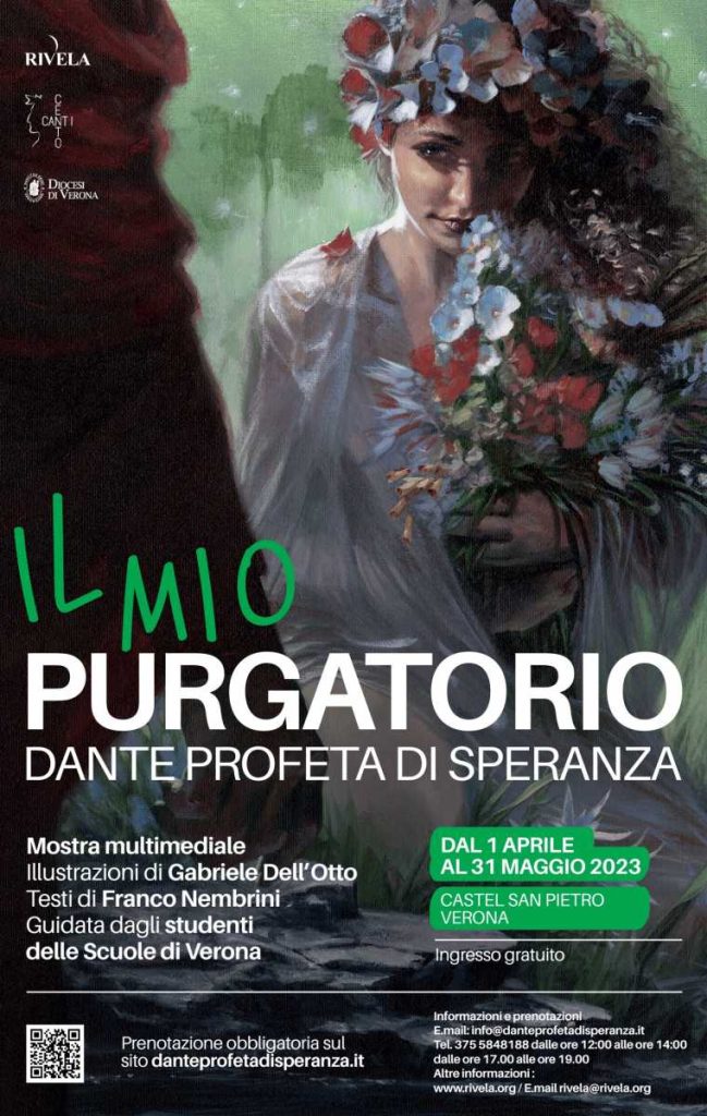 | Conduce nel “secondo regno” la mostra multimediale “Il mio Purgatorio. Dante profeta di speranza”, visitabile dal 1° aprile al 31 maggio negli esclusivi spazi di Castel San Pietro, a Verona. L’imponente edificio ottocentesco che domina dall’alto la città, oggi proprietà di Fondazione Cariverona, ospita un evento tanto importante quanto originale: il viaggio di Dante Alighieri tra le sette balze della montagna del Purgatorio. Parole, video e suoni in un dialogo tra passato, presente e modernità che continua ad avere per protagoniste le giovani generazioni. La rassegna è organizzata da Associazione Rivela con il patrocinio di Regione del Veneto, Comune di Verona, Società Dante Alighieri Verona, Ministero dell’Istruzione – Ufficio Scolastico Territoriale di Verona, Agec, Confcommercio, Confindustria Verona, Cdo Veneto e Iusve. L’evento è in collaborazione con Casa Editrice Cento Canti e Diocesi di Verona – Vicariato per la Cultura. L’iniziativa è inserita in un “Progetto di Ampliamento dell’Offerta Formativa” della Regione Veneto ed è sostenuta da numerosi enti pubblici nonché da aziende private del territorio. |