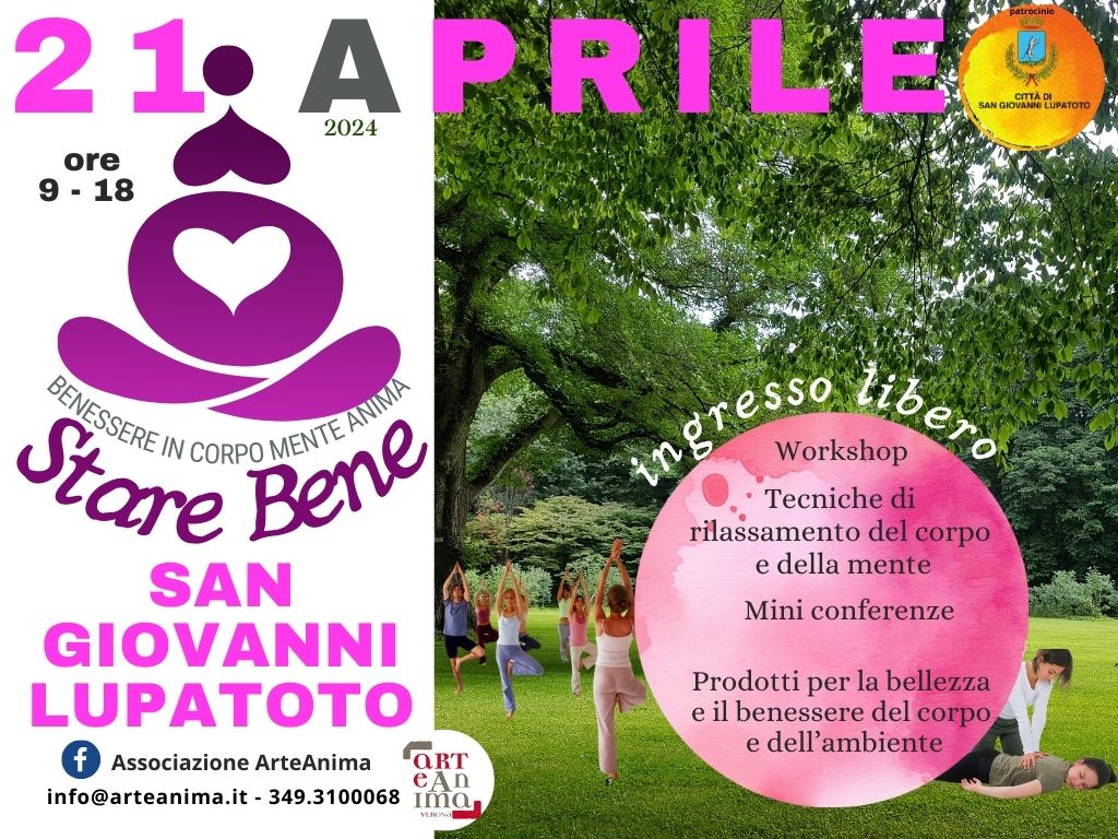 Una giornata dedicata all’ecologia e al verde dove si potranno trovare piante da giardino, da orto, da balcone…tanti prodotti artigianali “fioriti” ed eccellenze alimentari per una giornata all’aperto in allegra compagnia. Intrattenimenti per i più piccini. Un’area sarà destinata al benessere del corpo della mente e dell’anima. Vari operatori olistici daranno prova delle loro maestrie con massaggi di vario tipo…dai decontratturanti alla riflessologia facciale – plantare – shiatsu – reiky. Si troveranno inoltre integratori alimentari, prodotti per la bellezza e la cura del corpo, oggettistica spirituale per gli ambienti. Sessioni gratuite di thai chi – di balli in cerchio – mini conferenze…seguici alla pagina FB associazione ArteAnima.