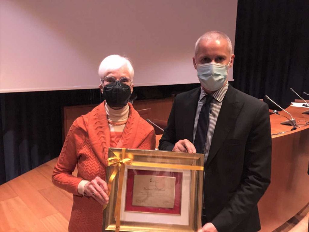 Si è tenuta alla Gran Guardia la cerimonia di consegna del Cangrande d’Oro, il prestigioso premio che Verona assegna ai campioni dello sport scaligero. Sul palcoscenico, una dopo l’altra, tutte le eccellenze dello sport veronese, una vera e propria festa in omaggio ai campioni delle diverse discipline ma non solo. Ad assegnare i premi il sindaco Federico Sboarina e l’assessore allo Sport Filippo Rando. La targa alla memoria è andata al dirigente sportivo Vincenzo Magliuolo , tra i fondatori nel 1980 a San Giovanni Lupatoto della A.S.D. Gemini Basketball assieme ala moglie Flavia Apostoli e Antonio Roccioletti. Ha collaborato con la Federazione Italiana Pallacanestro sia come formatore sia come direttore responsabile degli allenamenti sezione di Verona, ricevendo tutte e tre le stelle, bronzo, argento e oro, al merito sportivo, quest’ultima nel settembre del 2021 a coronazione di una vita nel segno dello sport. “ Iconico, figura di riferimento per la pallacanestro veronese”, queste le parole del Presidente del CONI Malagò alla consegna del riconoscimento. Nella foto la signora Flavia con l’assessore Rando.