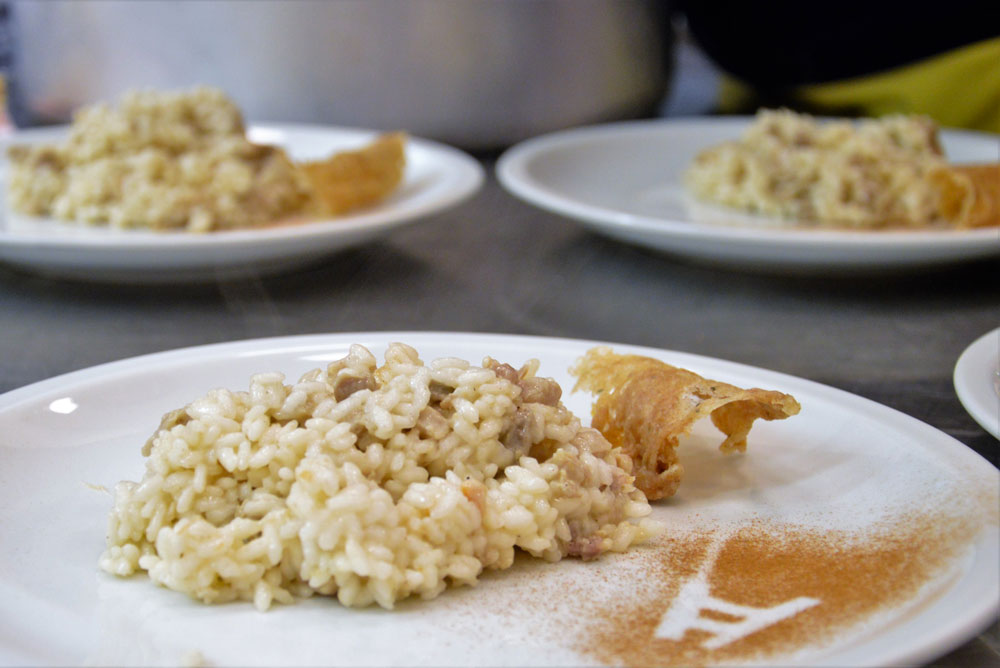 funghi e tartufi nel risotto.