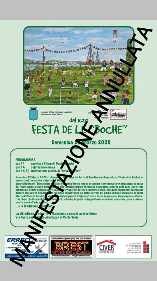 La Pro Loco comunica che a causa dell’emergenza coronavirus è stata annullata la tradizionale Festa de le Boche che era stata programmata per domenica 22 marzo.