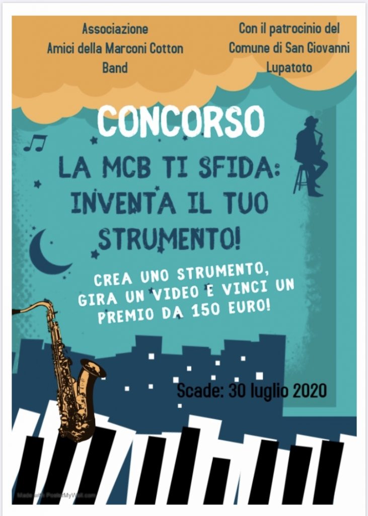 L’Associazione “Amici della Marconi Cotton Band”, in collaborazione con l’Assessore all’Istruzione Debora Lerin, ha indetto un concorso a premi per sensibilizzare i giovani lupatotini alla musica e allo studio di uno strumento.Un concorso insolito nel quale verrà premiata l’abilità e la creatività verso la musicalità anche senza avere la conoscenza di uno strumento.