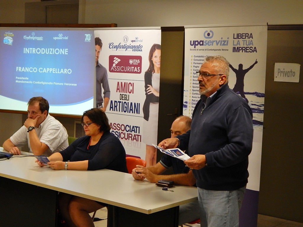 La presenza di Confartigianato Verona sul territorio della provincia, oggi, si chiama “Confartigianato On Tour”, nuova iniziativa della principale Associazione artigiana e di rappresentanza, tutela e sostegno delle micro, piccole e medie imprese veronesi. La tournée ha fatto tappa a San Giovanni Lupatoto nella serata di mercoledì 21 settembre, nella Sala Civica del Centro Culturale di Piazza Umberto I. “Un progetto che abbiamo fortemente voluto – ha spiegato Franco Cappellaro, Presidente del Mandamento Confartigianato Pianura Veronese -, per portare l’Associazione dagli imprenditori dell’intera provincia, senza alcuna distinzione di categoria e mestiere. Anche questa attività rientra nel ricco programma di proposte che la nostra Associazione sta allestendo fin dal gennaio scorso, per celebrare, nel corso dell’intero 2016, il settantesimo anniversario dalla fondazione”. “Confartigianato On Tour”, dunque, è una vera e propria tournée composta da ben 12 appuntamenti a partecipazione gratuita che stanno toccando tutte le zone del territorio provinciale, per affrontare alcuni dei temi ritenuti strategici per le aziende, che spesso si scontrano con la “non conoscenza” delle opportunità più interessanti per risparmiare tempo e denaro, attingere a risorse economiche ed ottenere rimborsi, lavorare in tranquillità e in regola, senza rischi causati da quella che Cappellaro ha definito “un’iperproduzione burocratica tutta italiana”. “Ci sono opportunità che noi piccoli imprenditori dobbiamo conoscere – ha proseguito il presidente mandamentale – e delle quali dobbiamo essere in grado di approfittare. Ecco, quindi, che ci siamo posti l’obiettivo di informare e offrire spunti di riflessione e di approfondimento sui vantaggi che le imprese possono acquisire nello sviluppare una politica aziendale più attenta e innovativa, anche in relazione alla situazione economica attuale. Abbiamo messo in luce strategie idonee per aiutare le imprese a rivedere il proprio stile aziendale attraverso varie opportunità che illustrate durante l’incontro”. Presenti in sala, tra i colleghi artigiani, Eugenio Moro (Delegato Confartigianato di San Giovanni Lupatoto), Illio Bertolini (Delegato di Bovolone), Gianni Sevaroli (Presidente del Mandamento Confartigianato di Verona Sud) e Gabriele Garmilli (Presidente Confartigianato Giovani Imprenditori Verona). Gli esperti di Confartigianato Verona hanno illustrato alla platea le opportunità, i servizi e le fondamentali informazioni da conoscere su temi come la Sicurezza, che non è solo obblighi e burocrazia, ma utile prevenzione al giusto costo; i contributi Ebav, che rappresentano utilissime opportunità di rimborsi economici per le aziende; la Formazione obbligatoria o meno legata alla sicurezza, per far crescere l’azienda ed essere in regola con le norme; gli accordi con Caem e Aim Energy, per risparmiare davvero sulle bollette di gas ed elettricità. “Oltre a questi argomenti – sono le parole di Cappellaro – abbiamo aperto un interessante parentesi per illustrare un progetto finalizzato all’analisi delle esigenze delle imprese associate, che nei prossimi mesi si allargherà a tutte le categorie, per studiare supporto, servizi e iniziative mirate in favore dell’artigianato”. Tutti temi ritenuti strategici per le aziende, che spesso si scontrano con la non conoscenza delle opportunità più interessanti per risparmiare tempo e denaro, attingere a risorse economiche ed ottenere rimborsi, lavorare in tranquillità e in regola, senza rischi. “Con la serata di San Giovanni – conclude il Presidente del locale mandamento – abbiamo fornito informazioni oggi fondamentali per costruire attorno a noi un territorio favorevole al nostro lavoro, in mezzo ad un habitat che di certo non lo è, non ancora. Perché buttare tempo e denaro, se è possibile farne a meno? A questa domanda, Confartigianato Verona è in grado di rispondere con professionalità, per questo consiglio a tutti i colleghi artigiani e piccoli imprenditori di non sottovalutare la possibilità di mettersi in contatto con un’Associazione che è guidata da uomini e donne come loro e gestita da professionisti esperti, le cui priorità sono le esigenze delle imprese artigiane e la risoluzione dei loro problemi”.
