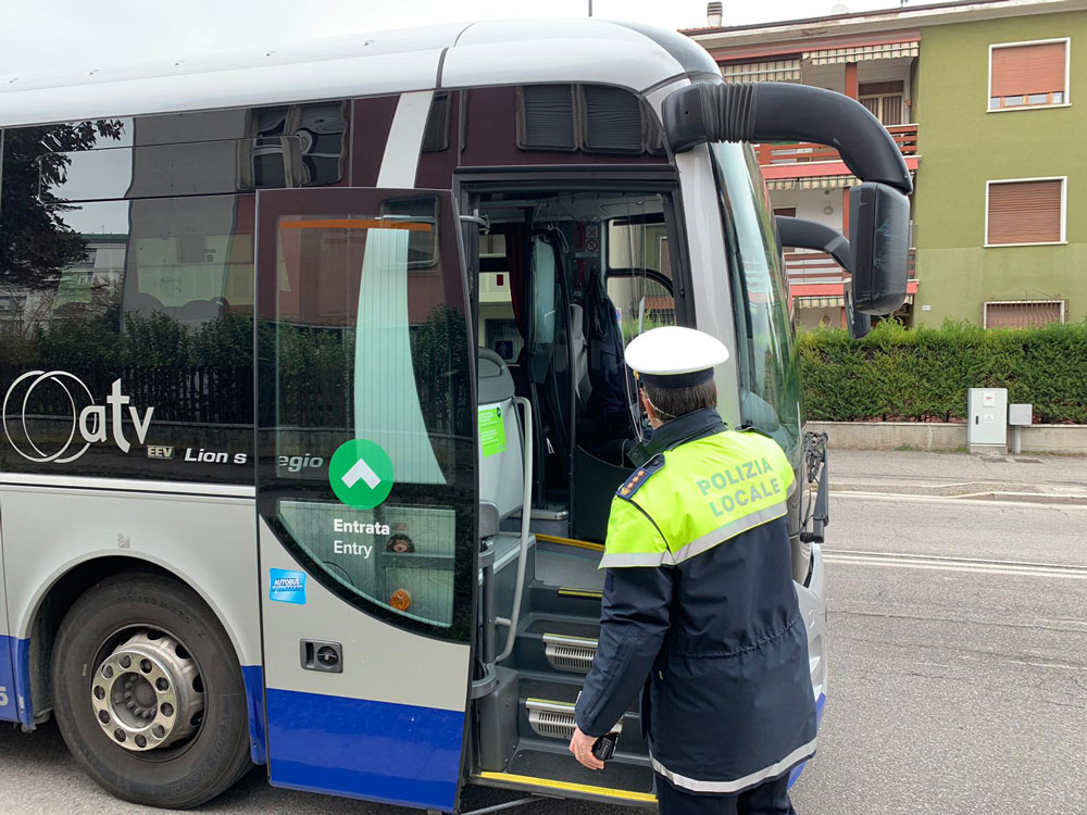 Giornata di controlli da parte della Polizia municipale di Verona  che da oggi ha iniziato gli accertamenti anche sui bus extraurbani che arrivano in città. Nonostante divieti e appelli alla cittadinanza a rimanere a casa, resta alto l’utilizzo degli autobus per lo spostamento tra un comune e l’altro e la presenza a bordo di utenti che si muovono  senza un motivo.