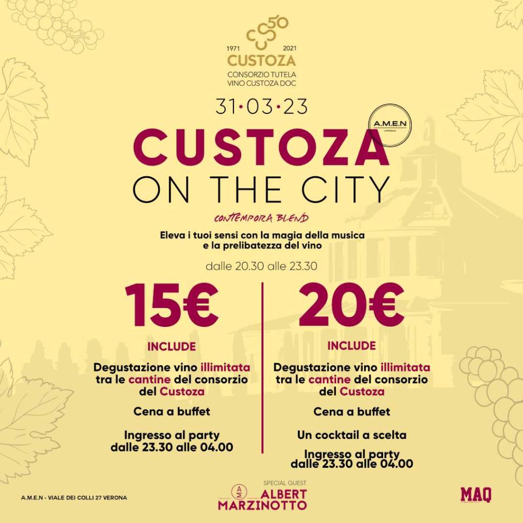 CUSTOZA ON THE CITY’ è un evento tematico dedicato ai sempre più numerosi ‘winelovers’ scaligeri, d’Italia e provenienti da tutto il mondo in occasione della settimana di Vinitaly&The City.