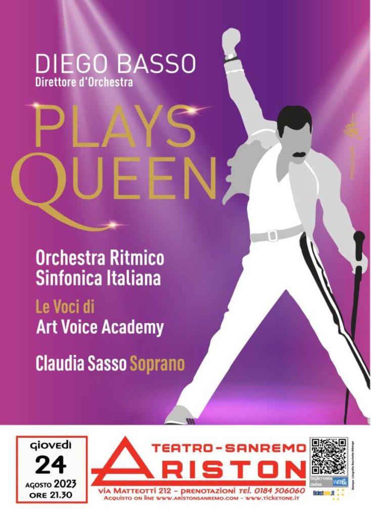 Il 24 agosto, presso il Teatro Ariston di Sanremo (Imperia), si terrà un altro imperdibile appuntamento del “DIEGO BASSO PLAYS QUEEN”, una serata evento in occasione dei sessant’anni in quello che è riconosciuto, grazie al Festival di Sanremo, come il “tempio del pop italiano”. Lo spettacolo avrà inizio alle ore 21.30 e vedrà la partecipazione speciale del soprano Claudia Sasso.