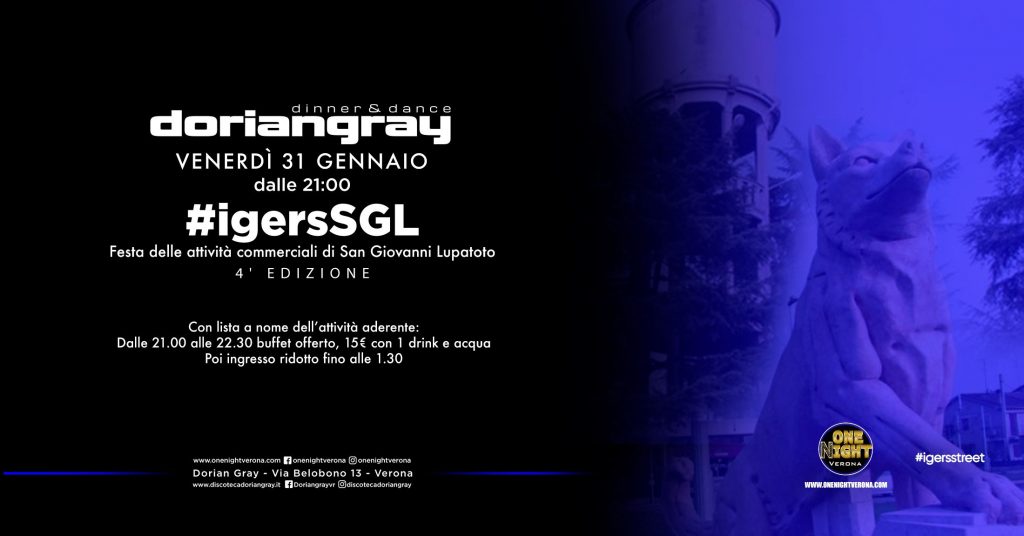 Venerdì 31 Gennaio 2020, si terrà presso il DORIAN GRAY di Ca’ di David, in via Belobono 13, la quarta edizione della festa delle attività di San Giovanni Lupatoto, #igersSGL, a seguito delle precedenti di grande affluenza e partecipazione con l’obiettivo di dare visibilità agli esercizi commerciali presenti in loco anche al di fuori dei confini della cittadina, contestualizzata in una serata frequentata da un pubblico con alto potere di acquisto (nello specifico da un target di età mediamente over 30/35) in un locale punto di riferimento della movida veronese che vanta oltre 30 anni di attività.