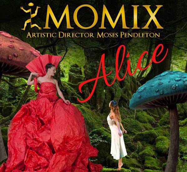 ispirata ad Alice nel paese delle meraviglie di Lewis Carroll, una favola grazie alla quale da oltre 150 anni molti bambini – ed adulti – conoscono Alice e le sue avventure, proprio come se le avessero sognate loro stessi. La storia di questa bimba curiosa in un universo assurdo è un mondo pieno di fantasia e divertimento e non c’è quindi da stupirsi che sia l’ispirazione per la più recente creazione Momix. Anche Moses Pendleton è infatti artefice di mondi simili ai sogni, popolati da creature strane e stravaganti. Il corpo di Alice cresce, si restringe e cresce di nuovo; quello dei ballerini muta per mezzo di oggetti, corde e corpi di altri ballerini. “Non intendo raccontare l’intera storia di Alice – dice Pendleton – ma usarla come punto di partenza per dare libero sfogo all’invenzione. Sono curioso di vedere cosa succederà e sto diventando sempre più curioso quanto più conosco Lewis Carroll che, come me, era un appassionato fotografo.”