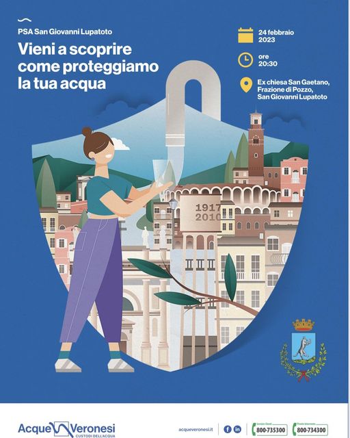 L’ex Chiesa di Pozzo ospita venerdì 24 febbraio alle 20.30 un incontro pubblico sul tema “Vieni a scoprire come proteggiamo la tua acqua”. Tra i relatori presenti Roberto Mantovanelli, Presidente di Acque Veronesi, Silvio Peroni, Direttore Generale di Acque Veronesi, Massimo Carmagnani, Responsabile Ricerca Applicata, Qualità Acqua e PSA e Chiara Ciocchetta, Ricerca Applicata, Qualità e PSA.