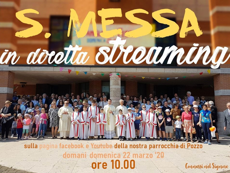 Domenica 22 Marzo alle ore 10.00 sulla PAGINA FACEBOOK DELLA PARROCCHIA ci sarà la diretta streaming della Santa Messa Celebrata dai Sacerdoti, diacono e Suore nella Cappellina della Chiesa, in collegamento con voi.