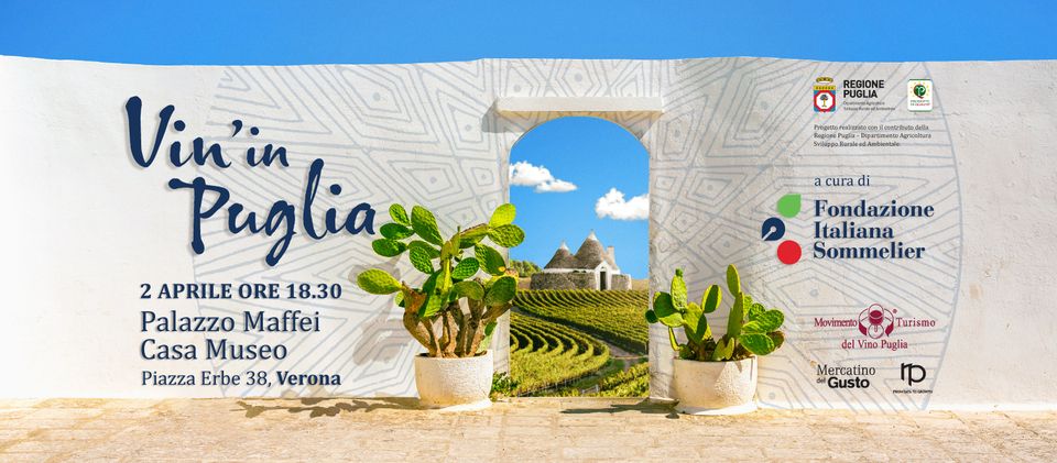 Sempre alle 18.30, nella press area della Sala Teatrino, al primo piano, si svolgerà invece il “Salotto di Vin’ in Puglia”, con un talk in cui giornalisti e addetti ai lavori dialogheranno con le istituzioni regionali sullo stato dell’arte e sul futuro della Puglia del Vino. Parteciperanno Roberta Garibaldi, docente di Tourism Management all’Università degli Studi di Bergamo, che relazionerà sul tema “Enogastronomia e Turismo in Puglia nel 2023”, e il presidente della Fondazione Italiana Sommelier-Comitato Organizzativo Puglia Giuseppe Cupertino, che presenterà “#EnoEvoPuglia”, nuovo progetto di incoming wine&evo in regione. Al termine la degustazione riservata agli addetti ai lavori con una selezione dei migliori vini del Movimento Turismo del Vino Puglia in abbinamento ai prodotti tipici pugliesi, raccontati dai Sommelier e nutrizionisti esperti di Fondazione Italiana Sommelier. Tutta la sala sarà allestita per ricreare un vero e proprio angolo di Puglia, con fotografie delle terre del Vino di Puglia accompagnate dalle ceramiche d’arte del maestro Franco Fasano dell’azienda Nicola Fasano di Grottaglie. In ogni momento, gli ospiti potranno partecipare alla visita guidata della collezione museale di Palazzo Maffei Casa Museo e accedere alla terrazza panoramica per un brindisi al sapore di Puglia sotto le stelle di Verona.
