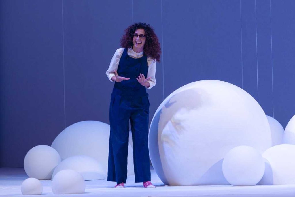 Lo spettacolo ‘Il giaguaro mi guarda storto’, scritto da Teresa Mannino con Giovanna Donini, in collaborazione con Maria Nadotti, è brioso e vivace, ambientato tra gigantesche bolle di sapone colorate nella scena di Maria Spazzi. Parla di donne, di “animali umani”, del futuro nel pianeta, di timori generalizzati che aprono alla speranza seguendo il fil rouge del desiderio.