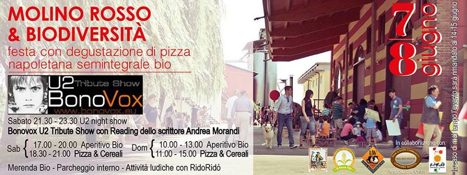 Sabato 7 e domenica 8 giugno l’Antico Molino Rosso di via Bovolino 1 a Buttapietra ospita la festa con degustazione di pizza napoletana semintegrale bio. Sabato alle 21,30 è in programma il concerto tributo agli U2 dei Bonbo Vox, mentre in entrambe le giornate sono previste attività ludiche con RidòRidò.