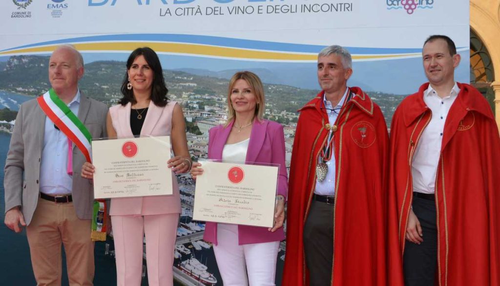 Il concorso enologico e le nuove ambasciatrici del Chiaretto. Sono l’imprenditrice Silvia Nicolis e l’avvocata specializzata in diritto vitivinicolo Sara Mafficini le due nuove ambasciatrici del Chiaretto. Ricevendo l’onorificenza, secondo un rito ben preciso, hanno preso l’impegno di portare il nome di questo vino in giro per il mondo. La cerimonia è avvenuta domenica 28 maggio alle ore 18 nel palco, rigorosamente in rosa, allestito all’interno del Parco Carrara Bottagisio. L’annuale appuntamento è stato aperto dalla sfilata della banda Filarmonica di Bardolino che ha attraversato il lungolago seguita dai mantellati delle Confraternite del Bardolino, del Gallo Verde e dello Snodar, Sovrano e Nobilissimo Ordine dello Antico Recioto. A dare il via alle celebrazioni il sindaco di Bardolino, Lauro Sabaini, schierato sul palco con altri primi cittadini, ognuno in rappresentanza delle 39 cantine che nel 2023 hanno soddisfatto i requisiti richiesti per ricevere la Medaglia D’Oro del 13° Concorso Enologico di riferimento. Presente anche un amministratoredi Rednitzhembach, comune bavarese gemellato con Bardolino. Il premio Luana Brancher è andato all’impresa vitivinicola Costa d’Oro. Tra le note di colore, il neo-sindaco di Lazise, Damiano Bergamini, durante le premiazioni si è tolto la fascia tricolore per ritirare una delle medaglie d’oro assegnata all’azienda di famiglia. La parola è passata poi al presidente del Consorzio di Tutela del Chiaretto Bardolino, Fabio Dei Micheli, che a sua volta ha lasciato spazio al Gran Maestro cerimoniere, Fausto Zeni. Le due nuove ambasciatrici hanno risposto alle domande di rito, ricevuto il tocco della spada sulle spalle, bevuto un sorso di Chiaretto e ricevuto la pergamena di attestazione. Da menzionare anche il podio del concorso fotografico Adriano Banterla dedicato a scatti con soggetto i tulipani.