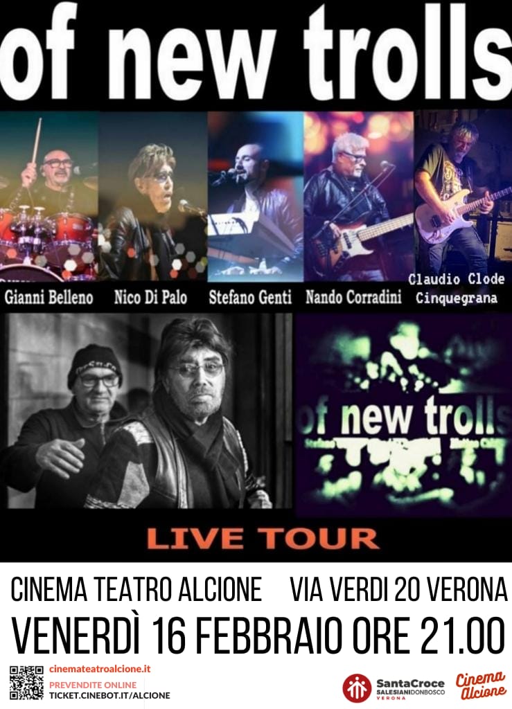Venerdì 16 febbraio 2024 il palco del Cinema Teatro Alcione ospiterà delle vere leggende della musica prog italiana: Gianni Belleno e Nico di Palo, storici membri dei New Trolls, accompagnati da musicisti di grande spessorecome Claudio Cinquegrana, con il loro progetto Of New Trolls.