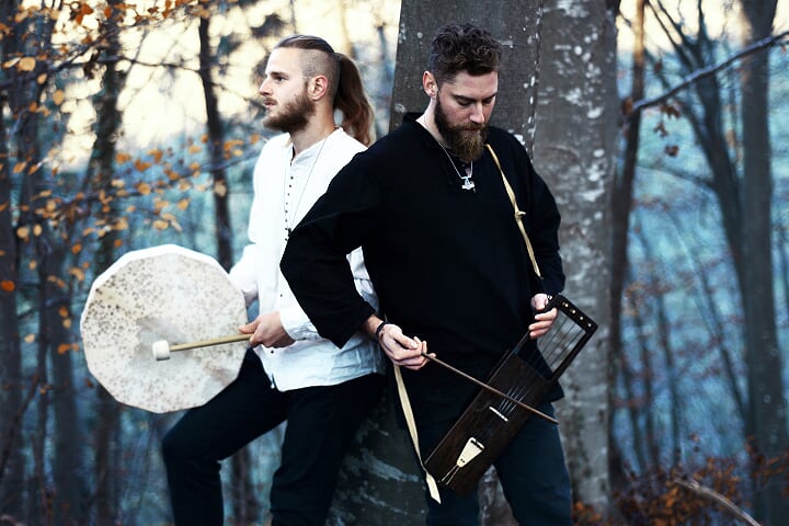 Alessandro e Davide sono due polistrumentisti veronesi provenienti dall’Irish traditional e dal metal, con più di un decennio di concerti alle spalle. È da una loro idea che nasce il Ragnarök Duo – Viking & Nordic Folk, per proporre un accattivante repertorio da pub e una vasta scelta di canzoni tradizionali nordeuropee in lingua scandinava; l’islandese, il norvegese moderno e il norreno antico si mescolano per creare un’atmosfera epica, che culmina nella recitazione musicata dell’Edda poetica, la fonte principale della mitologia nordica. La rivisitazione di vari gruppi – come i Wardruna – e la colonna sonora della serie TV Vikings, vengono accompagnate da strumentazione originale d’epoca vichinga che si fonde con quella moderna e digitale forgiando una suggestiva e coinvolgente performance.
