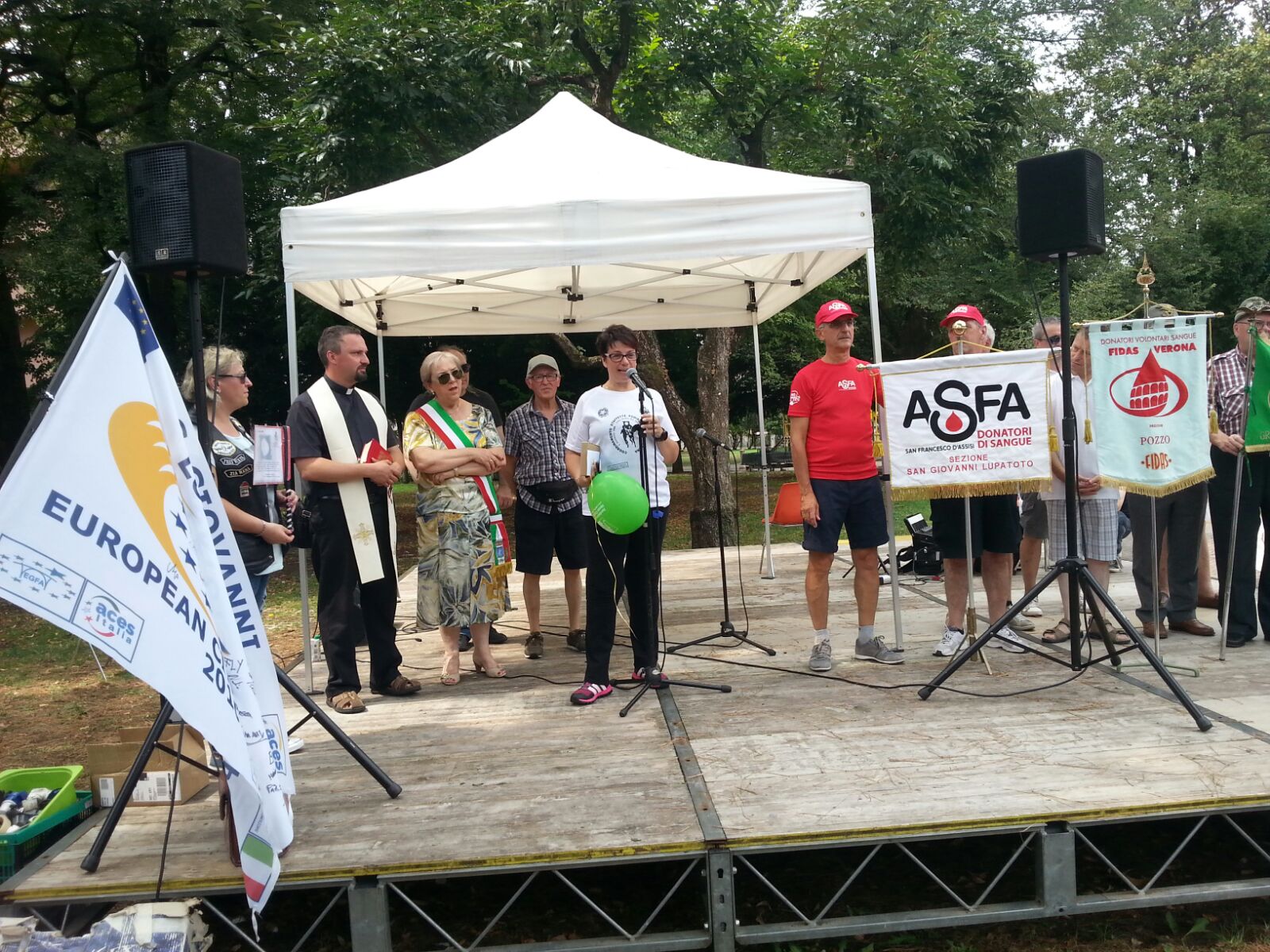Una corsa in memoria delle vittime del terrorismo, dal Brennero a Bologna, per non permettere di dimenticare uno dei giorni più bui della storia recente dell’Italia. E’ transitata anche da San Giovanni Lupatoto la staffetta non competitiva “Insieme per non dimenticare il 2 agosto 1980”, in ricordo delle vittime della strage di Bologna organizzata in collaborazione con le Associazioni del comune che, per il quinto anno consecutivo, garantiranno l’assistenza sul tratto Chievo – Ostiglia. Il passaggio della staffetta si è svolto domenica 31 luglio, alle ore 12.30, nel parco ai Cotoni al termine del concerto della rassegna “Sangiò Art Festival”. Ad accogliere l’arrivo della rappresentanza dei partecipanti  le autorità comunali e le associazioni locali che hanno collaborato all’organizzazione. La carovana coinvolge circa 400 persone sul suo percorso, coordinate da Sonia Zanotti e accompagnate da Cristina Caprioli, sorella di Davide, unica vittima veronese della strage. La staffetta è partita il 29 luglio alle 10 dal Confine di Stato del Brennero, per arrivare a Bologna, al parco Montagnola, martedì 2 agosto alle 7.30, al termine di un percorso di poco più di 350 chilometri. I Comuni del Veronese in cui domenica 31 luglio sosterà la staffetta saranno Dolcè, Chievo, San Giovanni Lupatoto, Buttapietra, Isola della Scala, Nogara e Gazzo. La staffetta proseguirà verso il territorio mantovano, per la tappa successiva, prevista a Ostiglia.L’Amministrazione comunale ha patrocinato questa meritevole iniziativa come un atto dovuto alla memoria delle vittime della strage di Bologna e di tutti gli atti di terrorismo nel nostro Paese e, in tempi recenti, anche in altri Stati. Un ringraziamento particolare alle associazioni lupatotine coinvolte, sempre generose nell’assicurare il supporto a questi eventi – ha spiegato l’assessore Maria Luisa Meroni, che ha accolto i partecipanti –. Il passaggio della staffetta è stata  l’occasione per rendere omaggio ai morti, ai feriti, ai loro familiari, a tutti coloro che hanno sofferto le conseguenze terribili della strategia della tensione.”