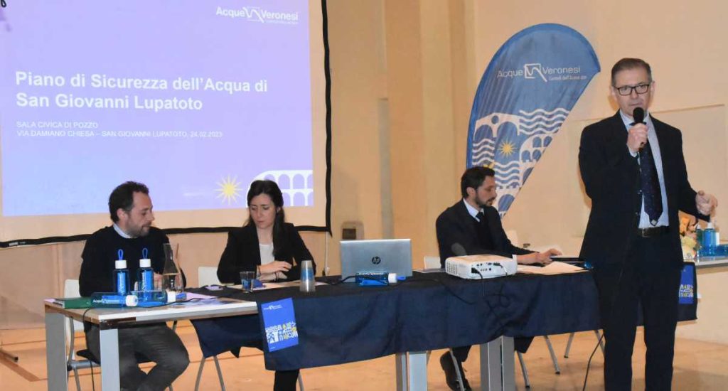 Sapere come gestire un problema prima che questo si manifesti: ecco a cosa servono i Piani di Sicurezza dell’Acqua, lo strumento innovativo voluto dall’organizzazione mondiale della sanità per garantire una sempre maggiore qualità e sicurezza dell’acqua di rete. Acque Veronesi ne ha già completati quattro: dopo Lonigo, Verona e Pescantina è stata la volta di San Giovanni Lupatoto. Lo scorso 24 febbraio si è tenuta la presentazione ufficiale alla cittadinanza nell’ex Chiesa di Pozzo. Presente anche l’amministrazione lupatotina, in testa il sindaco Attilio Gastaldello, il vice Mattia Stoppato, gli assessori Marco Zocca, Maria Luisa Meroni e Debora Lerin.