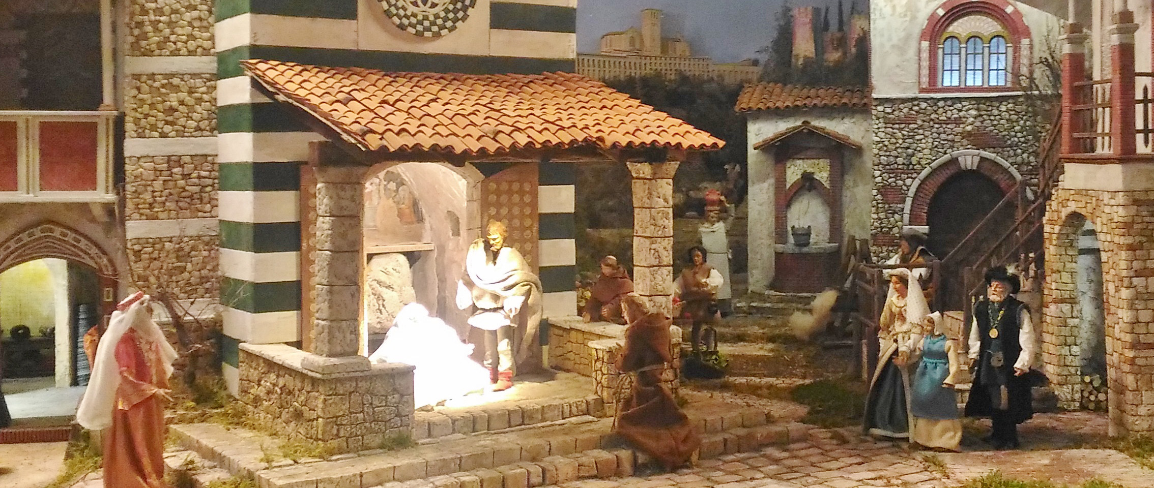 Presepe PozzoIl presepe nella Chiesa di San Gaetano a Pozzo di San Giovanni Lupatoto è stato ambientato quest’anno in un borgo medioevale con il Santuario di San Francesco, ad Assisi, che fa da fondale per ricordare la Missione Francescana avvenuta nelle parrocchie del nostro Comune nel mese di marzo. Altro elemento legato a San Francesco è dentro la chiesetta che fa da quinta alla natività. All’interno è stata riprodotta la Cappella del Presepio dell’Eremo di Greccio, costruita nella grotta che vide la rievocazione della Natività da parte di Francesco nella notte di Natale del 1223. Sotto la mensa dell’altare si conserva la roccia che, secondo la tradizione, ospita la statua in terracotta del Bambino che durante la rievocazione voluta da Francesco ( nel punto dove è stata messa una stella dorata). Sopra l’altare un affresco quattrocentesco rievoca, a destra, la Natività del Signore a Betlemme, la Vergine è colta nell’intimo gesto di allattare il Bambino alla presenza di San Giuseppe. Sulla sinistra è dipinta la rievocazione della Natività voluta da Francesco a Greccio; il Santo, in vesti di Diacono, è in ginocchio al centro davanti al Bambino, alle sue spalle i popolani di Greccio assistono alla scena. L’affresco, dipinto nel 1409, è attribuito all’anonimo Maestro di Narni. Ritornando al presepe meritano di essere osservati i costumi dei personaggi, il grande camino all’interno dell’abitazione a destra della scena, il venditore di stoffe sul lato sinistro e tanti altri particolari