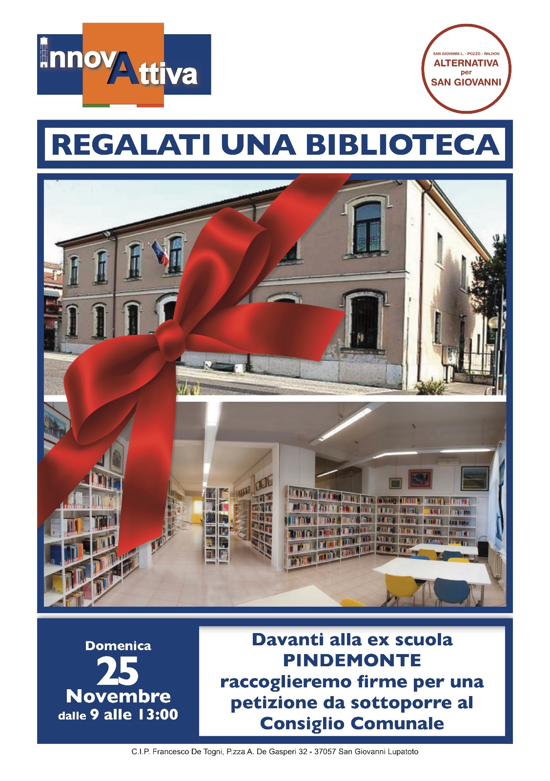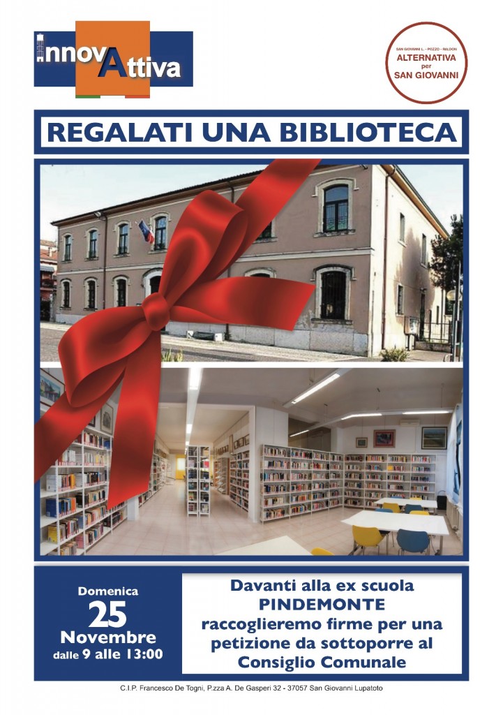 L’invito pertanto, anche in vista delle imminenti festività, è di regalarci una nuova biblioteca… aiutateci a realizzare questo sogno. Basta una firma!