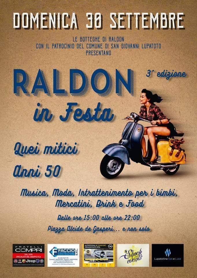 Tante sono le novità previste per la terza edizione di “Raldon in Festa”, appuntamento in programma domenica 30 settembre dalle 15 alle 22 ed organizzato dall’associazione “ Le botteghe di Raldon” presieduta da Milena Poli. Appuntamento patrocinato dal Comune di San Giovanni Lupatoto con la sponsorizzazione di Lupatotina Gas e Luce, Opel De Togni e Fiat Compri. La formula è ormai quella collaudata che prevede la chiusura del centro storico della frazione lupatotina e grazie alla quale è possibile conoscere ed apprezzare le realtà commerciali locali. Ma è anche un momento di svago, di incontro, di divertimento nel tratto che per l’occasione viene completamente chiuso al passaggio delle auto. Niente di meglio dunque per trascorre un pomeriggio o la serata in compagnia o con la famiglia dal momento che numerosi sono i momenti di intrattenimento dedicati ai più piccoli. Spazio dunque al divertimento grazie alla musica, per l’occasione strettamente dedicata ai mitici anni 50, così come agli intrattenimenti a base di aperitivi, birra, cocktail, risotto, panini e molto altro. Per quanto riguarda le novità dell’edizione 2018 assolutamente da non perdere una esposizione di vespe d’epoca a cura del Vespa Club Drago di Bovolone e che ci riporta con la memoria al film “ Vacanze romane”, protagonisti Gregory Peck e Audrey Hepburn, oltre all’esibizione dei ballerini della Polisportiva La Cometa che proporranno il meglio del loro repertorio nel corso della manifestazione. Una curiosità: tutti i commercianti porteranno al collo un foulard rosso con i pallini neri.