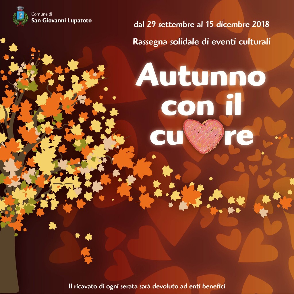 L’Amministrazione Comunale di San Giovanni Lupatoto inaugura, a partire da sabato 29 settembre p.v., un nuovo cartellone di manifestazioni culturali all’insegna della solidarietà presso il Teatro Astra di San Giovanni Lupatoto. La nuova iniziativa dal titolo Autunno con il cuore – rassegna solidale di eventi culturali è nata con l’intento di dare conforto a chi più ne ha bisogno attraverso una raccolta fondi, in gran parte derivante dai ricavi o dalle donazioni di ogni serata.