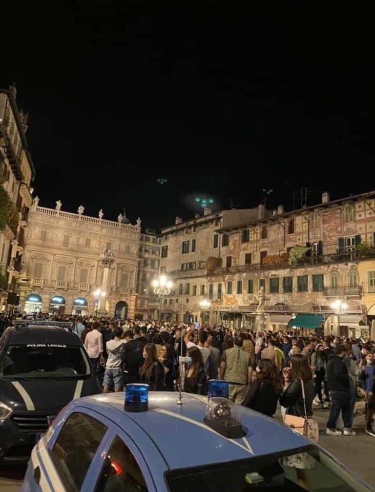 Dalle 22 di venerdì 22 maggio, centinaia di persone si sono radunate in piazza Erbe, senza rispettare il divieto di assembramenti, talvolta persino abbracciate tra loro con gli schiamazzi che si sono prolungati oltre le 2 di notte. Per tutta la sera, gli esercenti hanno mandato segnalazioni alle centrali delle Forze dell’Ordine così come altrettanto numerose le segnalazioni dei residenti, per il chiasso fino a notte inoltrata. Davanti alle Forze dell’Ordine, alcune persone presenti in piazza hanno avuto atteggiamenti aggressivi.