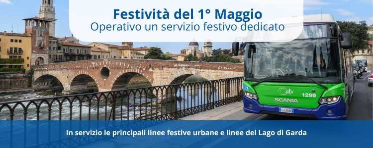 In occasione della Festività del 1° Maggio, giorno in cui tradizionalmente il servizio di trasporto pubblico è sospeso, per la prima volta quest’anno ATV metterà in campo uno specifico SERVIZIO FESTIVO che comprende le principali linee della rete urbana di Verona e le linee della rete extraurbana a maggior vocazione turistica.
