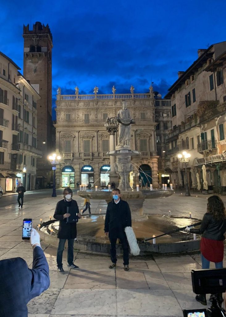 La consegna nelle mani del primo cittadino Federico Sboarina di due documenti con le richieste e proposte di Confcommercio Verona per una veloce ripartenza all’insegna della sicurezza, in una piazza Erbe illuminata dalle luci di decine di candele, ha rappresentato il momento clou del flash mob organizzato il primo maggio alle 21 dall’Associazione. “Siamo in collegamento virtuale con tutti i 98 comuni della provincia dove i nostri imprenditori del terziario di mercato stanno accendendo una lume davanti alla loro attività”, ha spiegato il presidente di Confcommercio Verona Paolo Arena. “Siamo arrabbiati, delusi e frastornati, vogliamo essere messi nelle condizioni di riaprire nel segno della sicurezza, le nostre imprese sono in grado di farlo e meritano fiducia”. “Chiediamo al sindaco Sboarina, che ringraziamo per la disponibilità e per la vicinanza più volte espressa alle tante aziende che da 60 giorni non incassano un centesimo, di farsi portavoce delle nostre istanze – ha detto Arena – Gli affidiamo un primo documento con le richieste del sistema Confcommercio a livello nazione e un secondo con le richieste ai primi cittadini dei Comuni veronesi. Siamo imprenditori seri, abbiamo sempre rispettato le regole emanate dal Governo e dalle istituzioni locali e svolto un ruolo fondamentale nella fase 1 anche per assicurare i beni di prima necessità, meritiamo di tornare a vivere anche per rispetto dei clienti e ridare vita alle città”. “Assumo in maniera convinta questo impegno – ha dichiarato Sboarina – perchè il commercio è un settore imprenditoriale significativo per il nostro territorio. Per questo, ricevo il documeno di Confcommercio anche anome del presidente della Provincia Manuel Scalzotto e degli altri 97 sindaci veronesi. Per quanto riguarda espressamente il Comune di Verona stiamo già facendo il possibile per sostenere le esigenze della categoria, penso ad esempio ai plateatici o allo slittamento dei tributi. Ma anche ad altre misure per i singoli settori in difficoltà. Il continuo e costruttivo confronto con l’associazione di categoria e il presidente Paolo Arena permette di avere il polso della situazione e poter agire rapidamente, sempre nei limiti concessi dalla norma e nel rispetto delle prescrizioni per contenre il contagio”. E sono state tantissime le imprese del terziario di mercato ad aver aderito all’iniziativa contrassegnata dagli hashtag #noncepiutemo #riapriresubitoinsicurezza, voluta per lanciare un forte segnale alle istituzioni affinché mettano in campo un piano concreto di aiuti a tutte le imprese del commercio, del turismo, dei servizi, delle professioni, del trasporto e anticipino il cronoprogramma attuale: centinaia le foto di lumi accesi davanti a imprese chiuse pervenute a Confcommercio Verona. In Piazza Erbe erano presenti anche le telecamere di Rai2 e del Tg5.