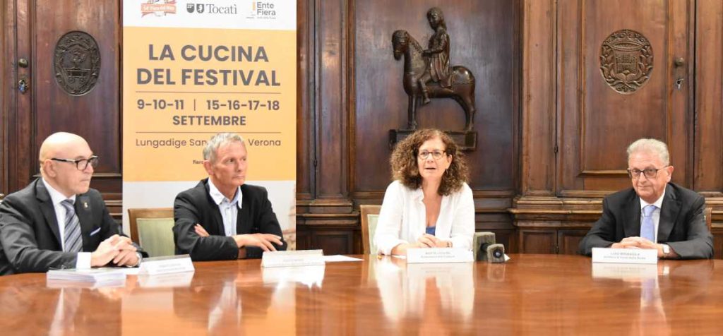 Al Tocatì 2022 non poteva mancare l’appuntamento gastronomico di qualità. Il festival dei Giochi Antichi rinnova infatti la collaborazione con la ‘cucina del festival’, la parte food della manifestazione curata dalla Fiera del Riso di Isola della Scala. Novità di quest’anno, è il raddoppio dell’iniziativa. Le cucine saranno infatti in funzione non solo nel weekend del Tocatì, dal 15 al 18 settembre, ma anche quello precedente, dal 9 all’11, un’anticipazione di ciò che veronesi e turisti troveranno con l’avvio vero e proprio della manifestazione. Confermata invece la location in lungadige San Giorgio. E’ qui infatti che gli stand enogastronomici proporranno il risotto all’isolana secondo la ricetta della tradizione, oltre ad altri inediti piatti per soddisfare il palato di tutti. Le cucine apriranno alle 19 il venerdì, il sabato e la domenica alle 12. Inoltre, sulla terrazza che si affaccia sul fiume Adige sarà possibile degustare l’aperitivo accompagnato dalle musiche dei Suoni lungo l’Adige. Il programma è stato presentato oggi in municipio. Presenti l’assessora alla Cultura, il sindaco di Isola della Scala, il presidente dell’Associazione Giochi Antichi Paolo Avigo e l’amministratore unico di Ente Fiera di Isola della Scala Roberto Venturi. “La ‘cucina del festival’ apre le porte al Tocatì valorizzando due primati del nostro territorio – ha detto l’assessora alla Cultura-. Un’iniziativa frutto della sinergia e del saper fare sistema tra le varie istituzioni, mettendo insieme due eccellenze del nostro patrimonio immateriali, la tradizione gastronomica e quella del giochi antichi”. “Anche per questa edizione, Tocatì propone un viaggio alla scoperta dei sapori tipici del territorio dove il gioco diventa un momento da assaporare e condividere – continua il Presidente del Festival Giorgio Paolo Avigo, – Il pubblico troverà a porta San Giorgio stand gastronomici con i maestri risottari che proporranno il risotto all’isolana secondo la ricetta della tradizione e altri inediti piatti. Inoltre, sulla terrazza che si affaccia sul fiume Adige sarà possibile degustare l’aperitivo accompagnato dalle musiche dei Suoni lungo l’Adige”. “Essere al fianco di Associazione Giochi Antichi con la ‘cucina del festival’ vuol dire dare continuità ad un progetto molto ambizioso, che punta a promuovere i valori socio-culturali che stanno alla base di entrambe le manifestazioni – ha detto Venturi, amministratore unico di Ente Fiera di Isola della Scala. – Un’occasione per promuovere quel turismo slow di cui il territorio ha bisogno, questa sinergia è il modello da seguire”. Visto il successo dello scorso anno, all’interno della torre asburgica verrà dato spazio alla conoscenza. Per i più piccoli sarà creato un laboratorio dove potranno vedere tutta la lavorazione del riso e una mostra dedicata alla promozione del territorio isolano”. La vera promozione del territorio passa attraverso il coinvolgimento delle varie realtà operanti nella nostra Provincia – conclude il sindaco di Isola della Scala Mirandola -. La collaborazione di Ente Fiera di Isola della Scala con l’Associazione Giochi Antichi costituisce sicuramente un passo in avanti significativo in questa direzione in quanto offre la possibilità ai tanti visitatori del Tocatì di approfondire la conoscenza della storia e delle tradizioni che identificano il nostro territorio”.