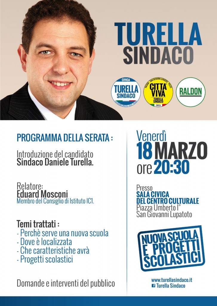 Di questo e di nuovi progetti scolastici, parleremo venerdì 18 marzo alle ore 20,30 presso il Centro Culturale, nella serata organizzata dalle Liste civiche che sostengono la candidatura a Sindaco di Daniele Turella.