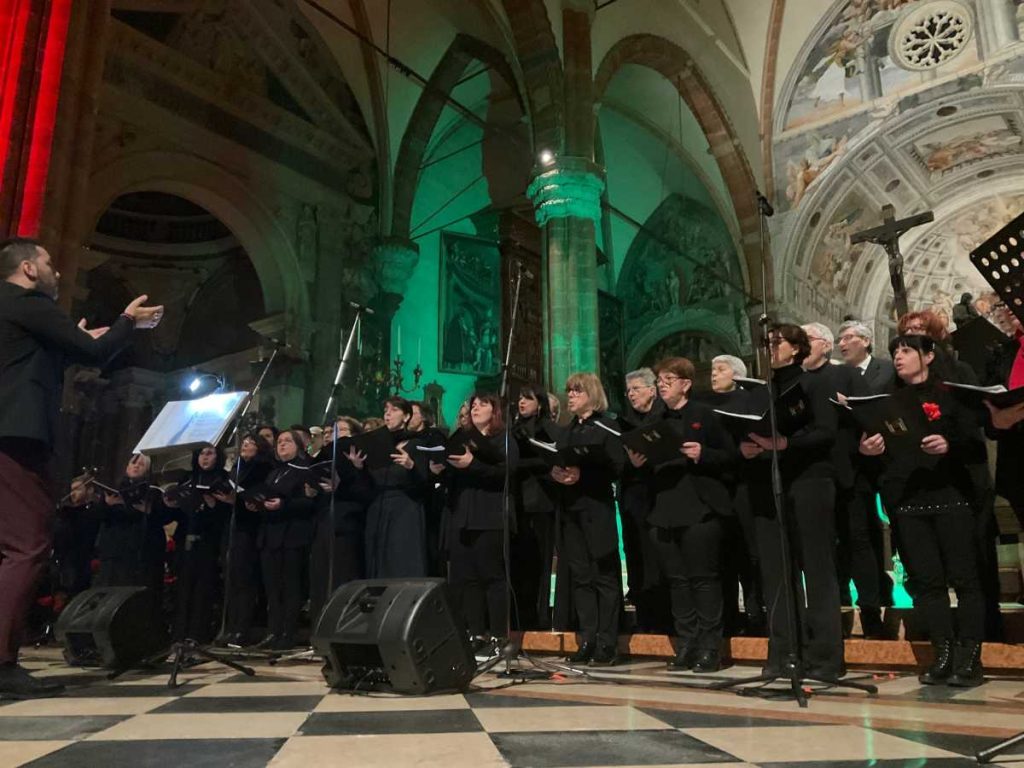 Il Duomo si è poi riempito della musica del Coro Marcelliano Marcello, ensemble vocale e strumentale con voce recitante diretto dal maestro Cristian Zinelli, che ha proposto un concerto con musiche sacre e di altra estrazione (brani di Franco Battiato, Fabrizio De André e il “Magnificat” di Marco Frisina già interpretato da Mina).