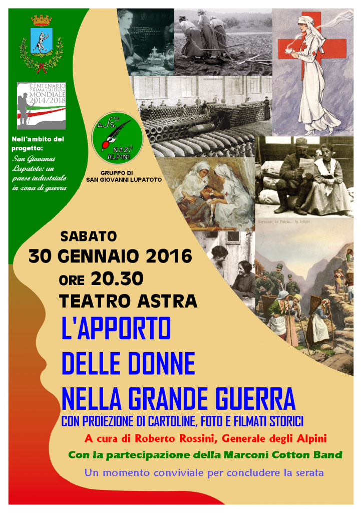 Proiezione di cartoline, foto e filmati storici commentati da Roberto Rossini, Generale degli Alpini, che permetteranno di ricostruire il ruolo fondamentale delle donne come supporto e affiancamento ai combattenti al fronte, molto spesso a ridosso della linea di combattimento.