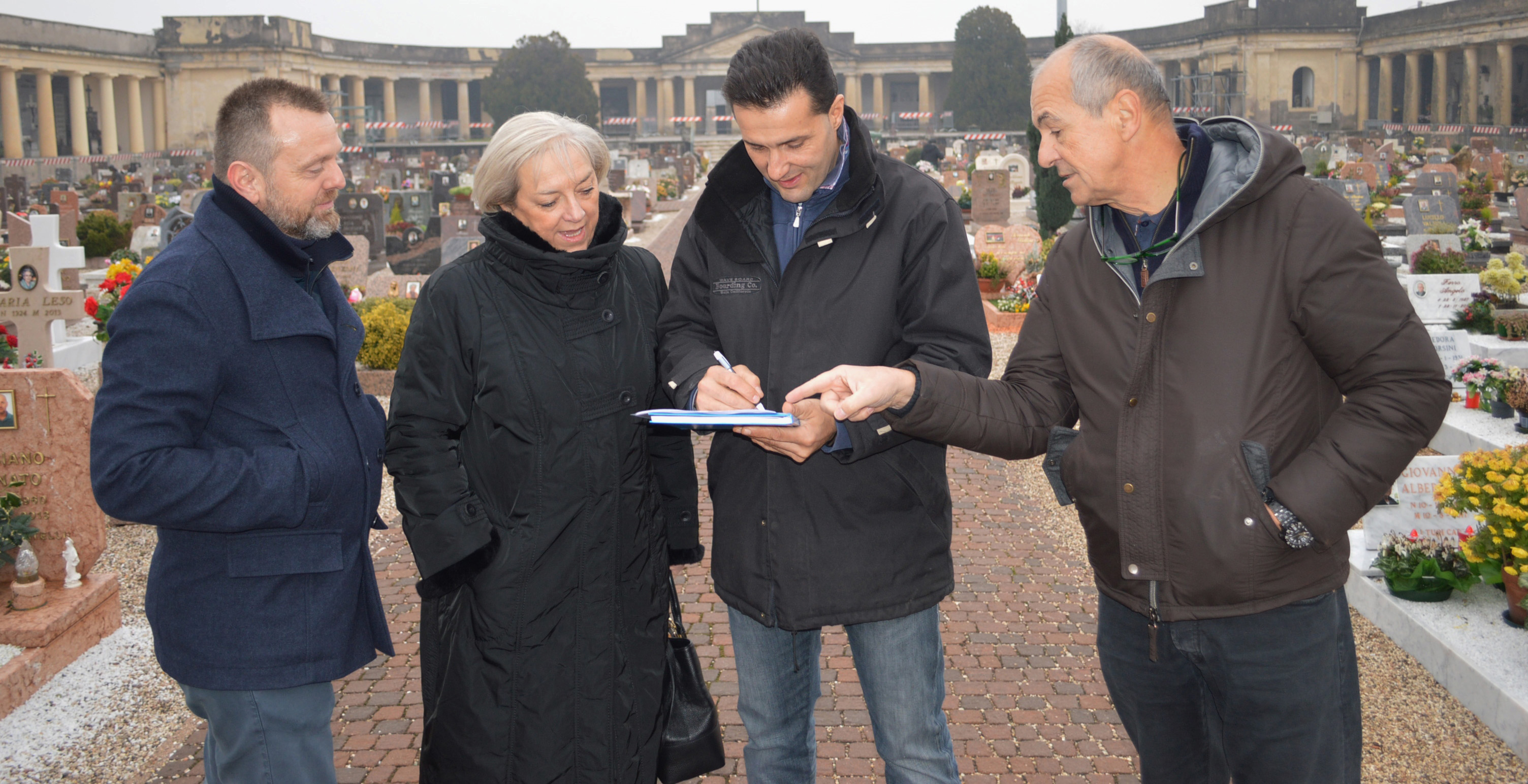 E’ stato siglato il 14 dicembre il contratto che prevede l’inizio lavori di restauro conservativo del Cimitero monumentale di San Giovanni Lupatoto, da parte della Cogeme di Brescia, relativamente al secondo degli otto stralci previsti. L’intervento, di un importo di 836.797 euro, verrà realizzato in 395 giorni in base al progetto esecutivo-definitivo approvato dalla giunta comunale il 16 novembre 2017. E’ prevista in particolare la sistemazione delle gronde, la pulizia dei marmi e degli obelischi, la tinteggiatura, la sistemazione delle aree esterne. Sarà la ditta Ediltre di Corte Franca (Bs) ad eseguire l’intervento, con la possibilità comunque di subappalto. Alla consegna dei lavori erano presenti, oltre ai rappresentanti di Cogeme, gli assessori Maria Luisa Meroni e Fabrizio Zerman ed i dirigenti del Comune di San Giovanni. Da segnalare che in occasione del consiglio comunale di ottobre, il sindaco Attilio Gastadello aveva precisato: ” Qualcuno addirittura ha messo in giro la voce che con il project financing si mandano i defunti in una fossa comune, il che è un’idiozia totale. Se trovo qualcuno che lo dice lo querelo perchè questo vuol dire non avere rispetto neanche dei defunti. Dire una cosa di questo genere, se qualcuno lo ha anche solo pensato, si tolga il pensiero, si vada a vedere le carte, se le vada a leggere per cortesia prima di ragliare su faceboock ed eviti di dire sciocchezze infinite”