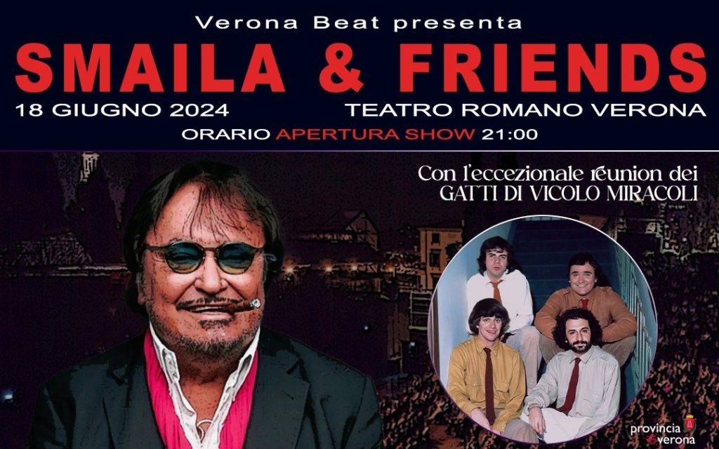 Martedì 18 Giugno spettacolo, divertimento e tante risate per l’evento celebrativo in onore della carriera di Umberto Smaila al Teatro Romano di Verona. Da un’idea di Giò Zampieri, grazie al supporto di Mauro Farina, CEO della casa discografica The Saifam Group e l’agenzia Saifam Off di Simone Farina, la prossima settimana va in scena uno show unico.
